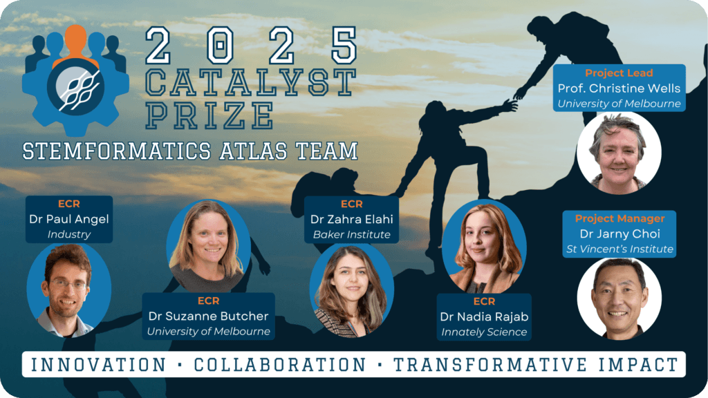 We are delighted to announce that the 2025 Catalyst Prize has been awarded to the Stemformatics Atlas Team for their outstanding contributions to the stem cell community, recognising their exceptional innovation, collaboration and transformative impact in the last five years.